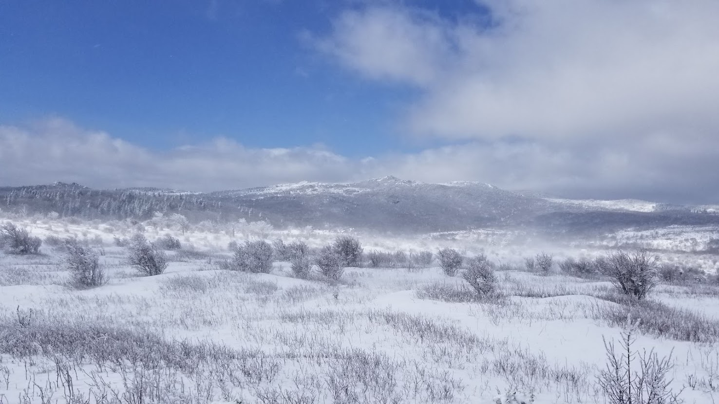 I woke early the next morning in anticipation of getting some miles. Several inches of snow had come down overnight, and my fingers were numb by the time I had packed my trusty Tarptent Protrail away. I’d hiked through the snow on the PCT, but that was different: a spring varietal of rotten snow that was crusty in the morning and rotten in the afternoon. This snow left the landscape deafly quiet. I saw a coyote as I pealed off my puffy jacket when the sun came up, my only companion in what seemed to be my personal winter wonderland. Shortly after I’d come across a solitary tent, and I felt amused to know the other hiker wouldn’t be packed up by the time I walked by. I broke trail that day in frigid temperatures all alone until early in the afternoon. After lunch I found fresh foot prints accompanied by massive paw prints, and part of me wondered if I had stumbled upon the tracks of a hungry black bear, following the scent of hikers in order to get some grub. The tracks led up the incline of Roan Mountain, one of the tallest peaks on the AT in this section. In the early evening I reached Roan Mountain High Knob, a double decker shelter nestled high on the mountain. There was a spring nearby that I filled up water reserves with before entering the shelter… inside were at least 6 other hikers! Two section hikers there were, and five thru hikers: Night Train, Opa, and Black Beard were a trail family (3/4s of the “Four Horsemen”, as they fancied themselves) and Research, who was a professor at a university who was hiking with the company of her Great Pyrenees, Atticus (I quickly deduced the “bear tracks” were his). The night would be as low as 14 degrees Fahrenheit, and snow came in through a hole in the roof. I’d made a marathon that day, and was ready for a night of cold, bad sleep.