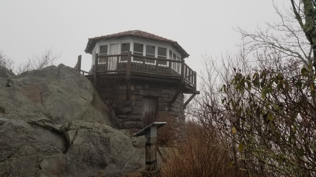 The Smokys were neat, but really more of the same: rolling green hills and muddy trail. By now it was clear that the lack of views was why many hikers referred to the AT as the “green tunnel”; woe is me. Only a day and a half through the park I had reached Newfound Gap, which denoted the border between North Carolina and Tennessee. The AT stretches for several hundred miles between the border of the two states, and I’d be hopping between each for the next week and a half. This afternoon the weather turned for the worst, and soon I was being pummeled by rain showers as I trudged ever forward, making a new high on the AT of 27 miles. On day 3 in the park, I reached Clingmans Dome, which at a measly 6,643 feet, is disappointingly the highest part of the AT (clouds obscured my view). I met some college kids on spring break that afternoon, and soon I was on the northern fringes of the park. I decided to spend the night at Mt. Cammerer Shelter, which Terrence had recommended to me earlier in my trip. The Mt. Cammerer Shelter lacks the amenities of other shelters I’d find further north, but it made up for it in uniqueness and dramatic design.
