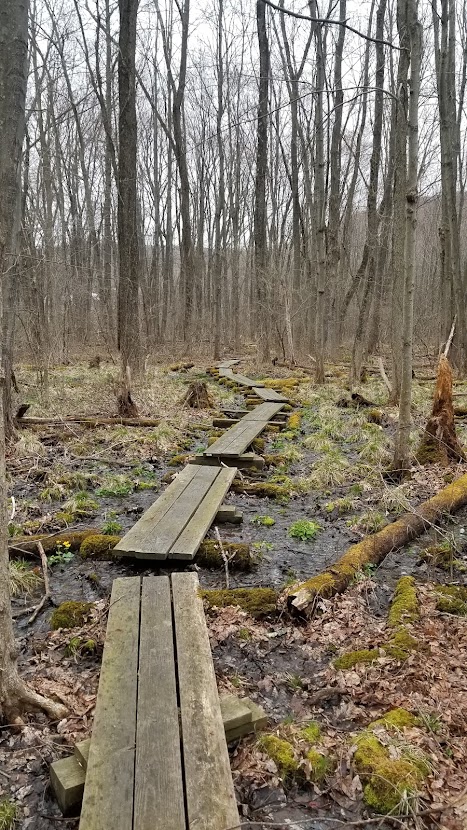 Without knowledge of the social media presence of any other thru hikers further north than me at this point, and not expecting to see anyone catch me from behind, I faced the realization that the rest of this hike would be cold and alone. It was a lonely feeling. I felt tied to this premeditated idea that I needed to complete the trail within 100 days to make it back to CA for work, but it had become clear that as I increased my mileage to average about 30 miles per day through the mid-Atlantic, that my mileage was outpacing the rate at which the weather would warm up. I blew through the relatively un-rocky state of New Jersey with quickness. In about 2.5 days I hiked over 71 miles to cross into the Empire State of New York, but it wasn’t without cost. This section of trail introduced stretches of huge, slick segments of rock, which can sometimes entail using your hands to climb safely. A Nor’easter hit New England that week, and the AT section I was on saw rain levels of over 2.5 inches in just a day. I battled the most bitter cold and rain I’ve ever experienced. It made the snow and freezing rain I had previously encountered feel like a balmy summer’s day. The hike was excruciatingly uncomfortable. I wept deeply, tears running down my cheeks and mixing with the frigid downpour. I developed a shiver that reverberated through my body and quivered in my spine. It is a shiver I’d never felt previously, but I now still feel today when the temperature drops. The same day, my mother texted me that our family dog had taken a bad turn in her epilepsy, and that my family wasn’t sure how much longer she’d have. I’m happy to say, with the support of my family, our dear pup (Asta) lived another 2 years. However, my day in the flash flood conditions stays with me: even as I write this now, I feel some level of fear or PTSD when faced with the prospect of hiking in intense rainfall. I was at my wits end and at my lowest point. I holed up in a privy at a shelter and chewed on poptarts between tears. After a measly 17 miles, I decided I wouldn’t quit on a bad day – so I took a bus into Warwick, NY, and got a hotel for the night.