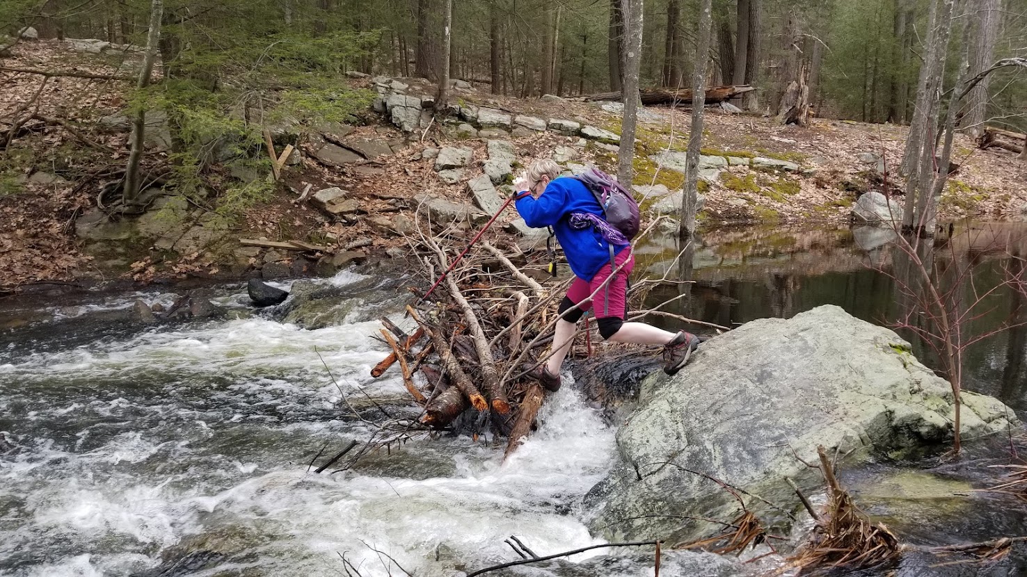 Within only a few short hours from departing the train station I had arrived at the Connecticut border. 9 states down – only 5 to go! Connecticut is a measly 48 miles, and less than 48 hours from that point, I had passed into Massachusetts… now 10 states down, only 4 to go. With 1,500 miles complete, I was getting close to being ¾ of the way done with the trail. Having recently seen family, and a enjoying a couple of zero days in the Big Apple, the finish line was looking sweeter and sweeter daily. The CT/MA border brought a dramatic change in trail texture: immediately I needed for ford a small stream. Up until then I had done a good job of rock hopping and balancing over these overflowing waterways, but I had no option other than getting my feet wet for this crossing. The icy cold fluid ran through my shoes and into my bones. I changed my socks and continued, noticing how now, for the first time on the Appalachian Trail, I was walking among a coniferous forest instead of mixed deciduous trees. Pine duff littered the ground below me, sometimes crusted with frost, and narrow, deep gullies seemed to shadow the trail going northward.