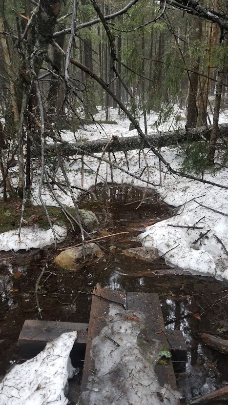 The Massachusetts/Vermont border is a bit of a milestone on the Appalachian Trail, as it also marks the southern terminus for the Long Trail, a 272-mile trail that stretches to the Canadian border. Almost immediately my path became brutal. Deeper snow, thicker blowdowns, and murkier ponds dotted my path now. I had managed 20+ mile days through the thick of MA, and even VT on this day, but it sure wasn’t easy. The temperature seemed to plummet into the afternoon, and soon I was coming across icy lakes. Up until this point, I had regularly braved uncomfortable weather. Subfreezing temperatures on numerous occasions, torrential downpours and potential floods, freezing sleet, you name it. But now, the sky was dark and there wasn’t a patch of dry land as far as I could see. Moreover, I was alone. That night felt like the peak of my misery, and for the first time on the entire trip, I began to become curious about my safety. Doubt seeped into my synapses and I second-guessed my own ability… was what I was doing safe, if even doable? Did my 100-day goal matter if I hated the way I felt?