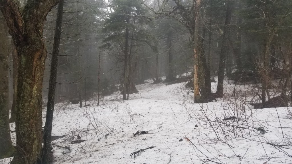In northern MA I finally ran across section hiker. His name was Nature-Al, and he was a section hiker from the Bronx. With his Boston Terrier by his side, we walked through northern MA, but our hiking friendship was short lived, as he stopped around 16 miles in the afternoon. Dutifully, slaved to the schedule, I pushed on, feeling sadder than ever. On day 69 I climbed the slopes of Mount Greylock, the highest point of the state of MA. Close to the top I began to battle a thicker layer of snow than I had seen this far – in fact, I needed to utilize my microspikes for the first time since North Carolina. Hiking down from the mountain I encountered freezing rain and felt my emotional strength waning. Slipping on a rock, bruising my rear-end, and ripping a hole in my gloves only added insult to injury. I called my mom and dad back home for encouragement – and what encouragement they gave, filling my heart with warmth and confidence. Truthfully, I was on the verge of quitting at this moment, having been tired, lonely, and sad since PA. I simply wasn’t having fun anymore. After a short while on the phone with my parents, I lost reception – I was heading back into the wilderness, where the Vermont border was only a few miles away.