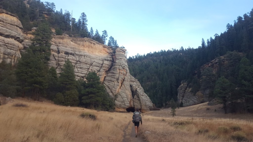 It was a treat to be in such delightful company with the Varners, but sadly we had to say our goodbyes after a short respite. Continuing southbound, we would enjoy the final few days of Northern Arizona’s mild elevation profile. Continuing to hike 30s, we met Juice, a bike packer making his way from LA to Boston. He was headed to Winslow, AZ, and I gave him some water before following his bike tracks the rest of the day. Shortly after, the climate began to change: we were met by deciduous foliage, the first running water of the trail (outside of the Colorado), and new geological formations. We had began to descend the Mogollon Rim, and our time in central AZ was upon us.