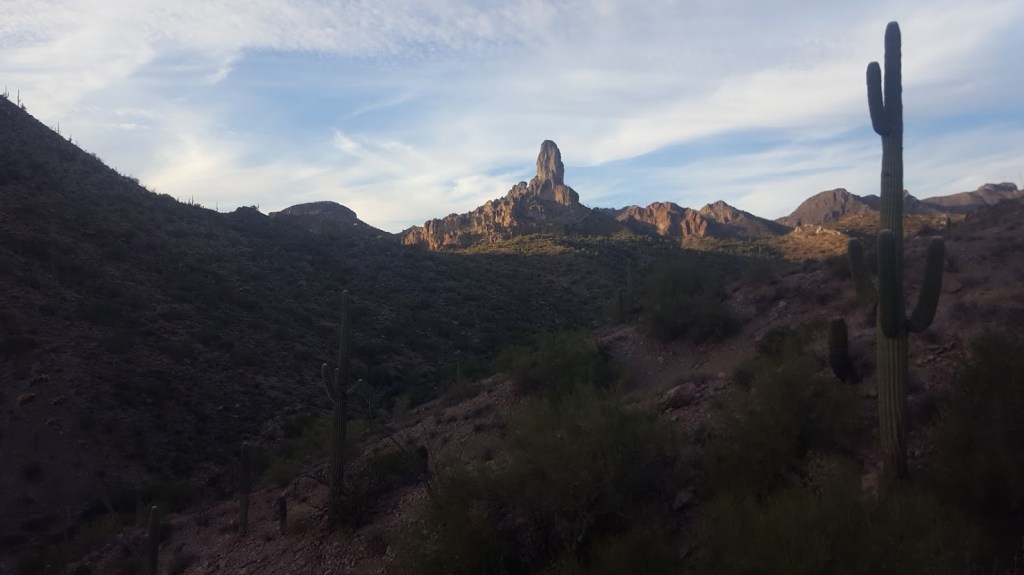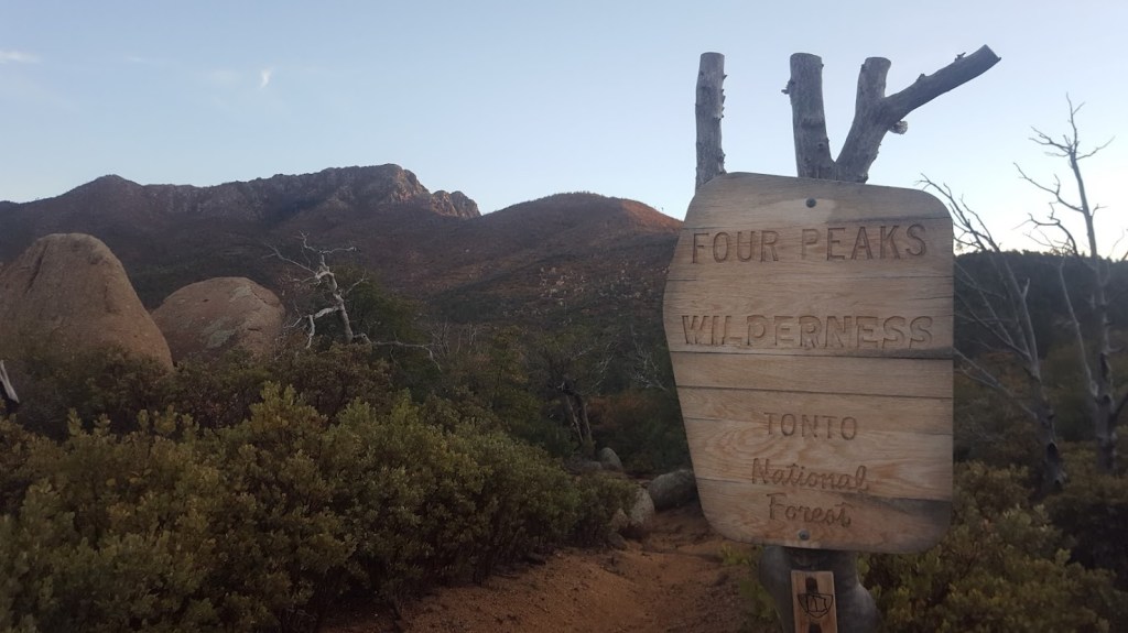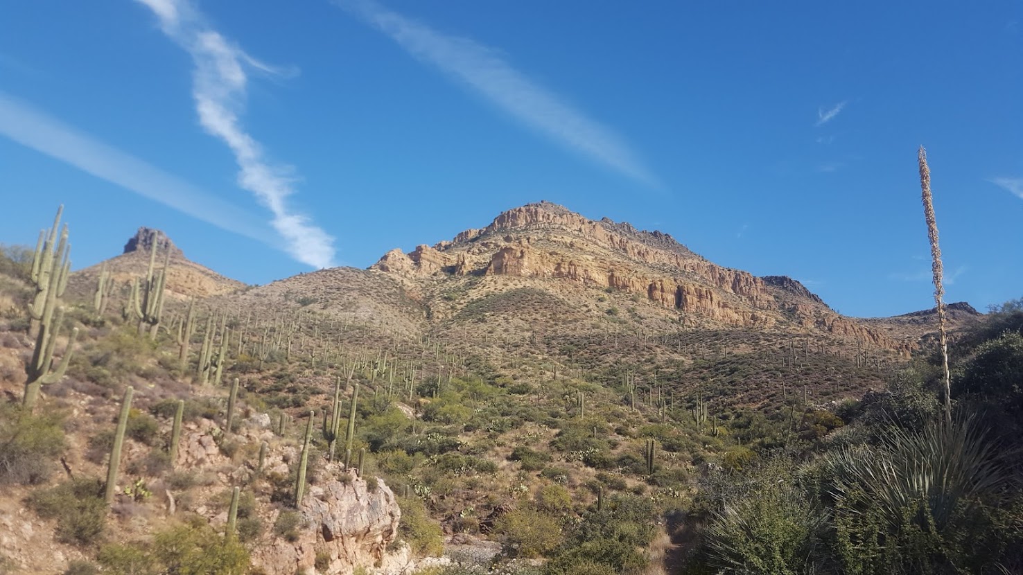 Around noon we reached our destination at Theodore Roosevelt Lake. My coworkers, Mike, Siera, Casey, and Brie aren’t your run-of-the-mill office employees: they are guides. That meant guide level travel magic – beers, electrolyte tablets, salad, fruit, good vibes, and even new shorts! We exchanged stories, drank and ate our fill, and relished in good company on the banks of the reservoir. The only thing more full than my belly, was my heart. Mike, having done trail maintenance for the Forest Service in the Four Peaks/Mazatzal area in the past, joked about how challenging the section was. Really, I was chagrined to leave their company: we were tired and could use a good night’s sleep in Phoenix! Despite my feelings of complacency, we said our goodbyes and plodded toward the Superstition Mountains, where my guiding employer often hosted backpacking trips for eager guests.