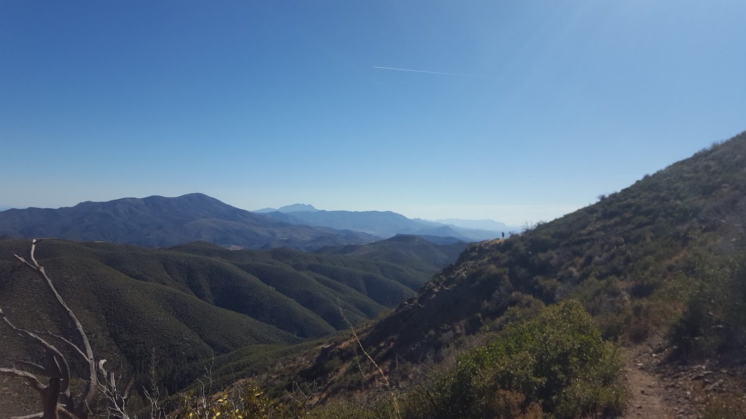 We would pass UTVs and hunting tents the following mornings before a surprising twist: a new thru hiker! We were glad to meet Myogi (make your own gear), who’s name we had noticed in trail logs previously. Myogi was also known as Dan Timmerman, a former professional cyclist who owns his own gear company: Timmermade. The emergence of Myogi was a nice change of pace, and we enjoyed conversation that morning before he got off trail for a premeditated rest in town. Around now the trail texture had began to change into uneven, rocky terrain, crowded with manzanita and cat’s claw, which left our legs scratched and bloody. Little did we know, this was only the beginning of what I would describe as being the hard part.