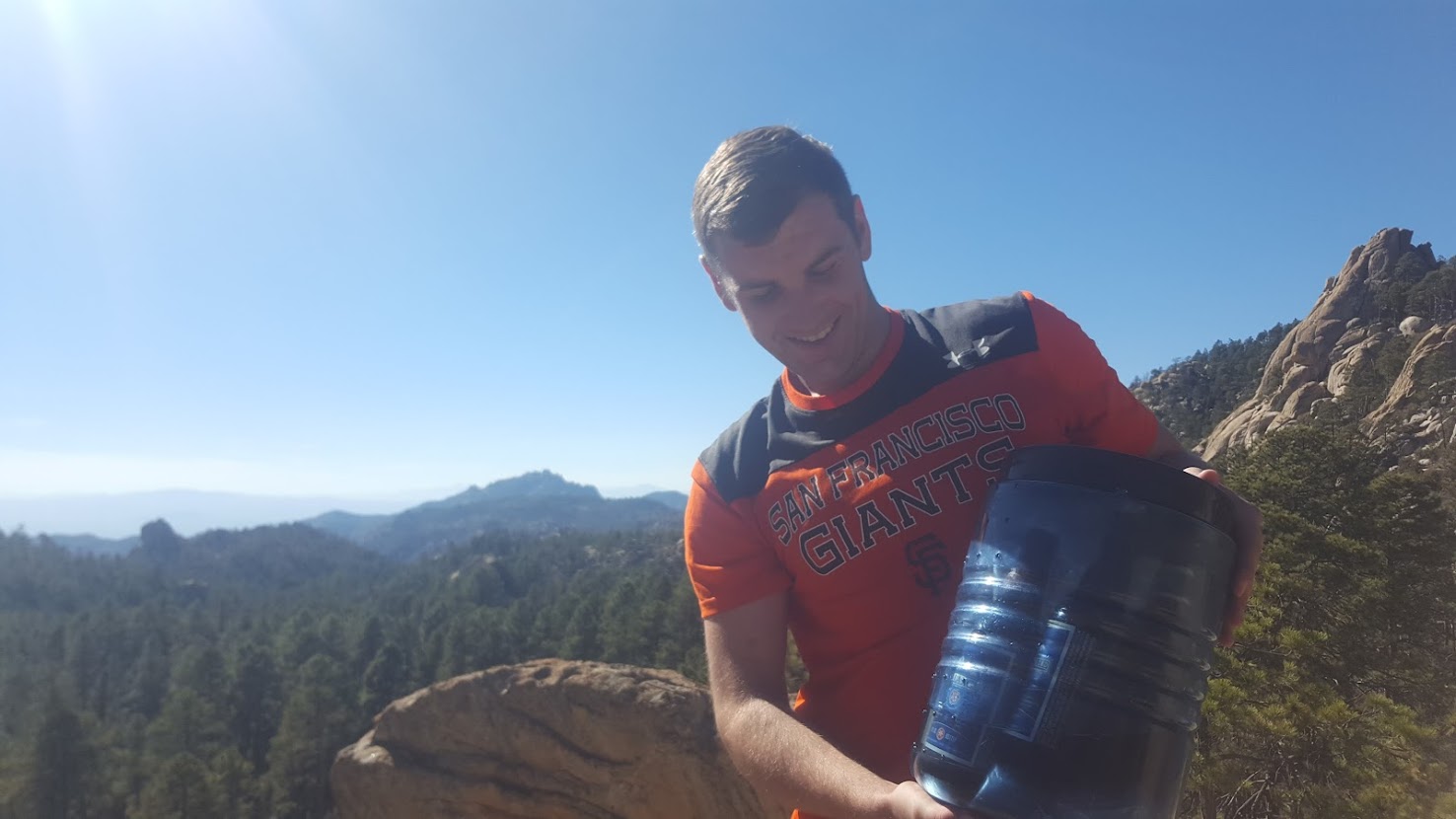 About halfway through our journey Cleansweep and I enjoyed a lunch and water refill at a river in the midmorning. There was good news and bad news upcoming. The bad news: the Mazatzal Mountains were ahead of us and supposed to be quite challenging, with tough elevation profiles and little water. The good news: we planned to meet up with some of my coworkers the next day. We optimistically cameled up with water and made were on our way. It was only about 25 miles or so until our next water, and I felt relatively healthy. However, I underestimated the speed we could hike with through the Mazatzals, and I ran out of water late at night, still 10 miles from the next water source. To add insult to injury, the vegetation of the region had torn my shorts apart. Essentially trudging along trail in my underwear, but encouraged by Cleansweep (who was nice enough to split a few ounces of water with me), we made camp. The next morning I found the strength to hike the 8 miles to our water source. These which were among the most difficult 8 miles I’ve ever hiked. Relieved to have fresh water again, we crushed several liters, replenished our bottles, and continued to hike in anticipation of meeting my friends for lunch.