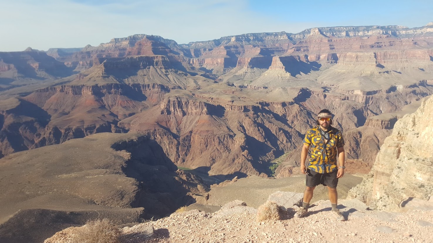 While the elevation dropped, so did the temperature increase. We enjoyed wildlife encounters with big horn sheep, as well as the geographically isolated Grand Canyon Pink rattlesnake, before arriving at Phantom Ranch for lunch. Phantom Ranch, which is located on the Colorado River, offered some shade and fresh water. We weaved our way through cacti and hikers alike before crossing the Colorado River on the Black Bridge and making our ascent up the South Kaibab trail. The going was steep, but in comparison to the mileage we had already obtained, the climb was relatively short. My hiking partner and I enjoyed snacks while enjoying views at Skeleton Point, and as we neared the South Rim, crowds got significantly thicker. Tired but happy, we were fortunate for a pair of travelers who were willing to share their tentsite with us. They offered us beers, and as we pitched out tents and fell asleep, we could hear them whispering to one another about how bad we smelled. Oh, the life of a hiker!