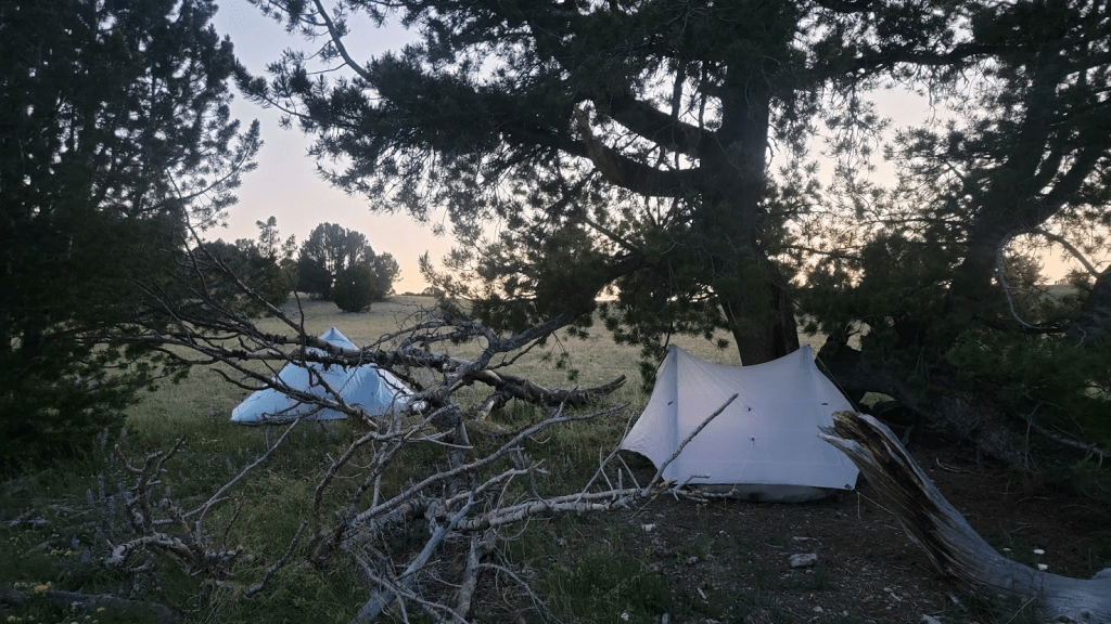 The sound of bugling elk echoed across the sky the following morning. I was hiking before sunrise, per usual. Trail snaked along a series of ridges. It was mostly tall grass and wildflowers, with the occasional deer or elk in the distance. Around lunch time I met my first true sobos of the CDT. These two set an expectation for southbounders moving forward: most of them had fresh clothes, bright eyes, and a bounce in their step. Afternoon brought a more forested environment, riddled with beetle kill. We made camp around 9:15 that night high on a hillside.
