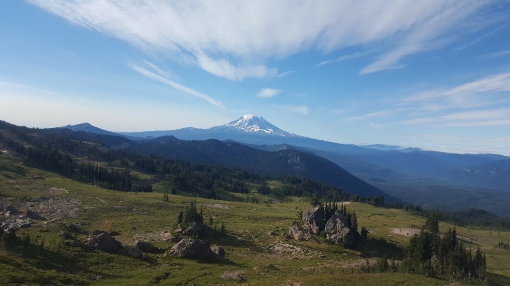 The first day and a half was relatively easy before arriving to Trout Lake, WA for a quick snack. I hiked out that afternoon and crashed near a meadow not far away from Mt. Adams, the first of Washington’s volcanoes. Back at Timberline Lodge I recounted my story of a failed 40 mile day to a hiker at the bar… when I mentioned I might try a 40 in Washington, she scoffed in my face at the notion that I’d be able to pull it off. Fast forward back to Mt. Adams: I awoke that morning earlier than normal, at 4 AM, with intentions to get some hours on the sun. The plan worked, and by lunch I was already 21 miles into my day. After a 30 minute lunch break, the rest of the day went by fairly quickly, ripe with plump huckleberries, boggy lakes, and intermittent clouds. By late afternoon I was already over 30 miles and nearing the Goat Rocks, one of the iconic portions of southern WA. I made dinner on trail, guzzled another two liters of water, and made my way through the outstanding Goat Rocks just prior to twilight. Distracted by mountain goats in the distance (a new wildlife sighting for me), I didn’t realize that I had finally reached by goal of a 40 mile day! With only 20 more miles to my next resupply at White Pass, I made camp for the day, satisfied I had reached a new personal record.