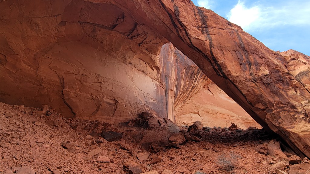 Deep in the Paria is the intersection of another slot canyon: Wrather Canyon. Wrather Canyon is a 3 mile roundtrip hike from the Paria on an unmaintained trail, but it sure is worth it! At the end of the hike is the impressive Wrather Arch. You can scramble up underneath it, but we were content to eat lunch and weather the wind. The side trail for Wrather is difficult to see from the Paria,so be sure to check your map resources if you’re interested in checking it out.