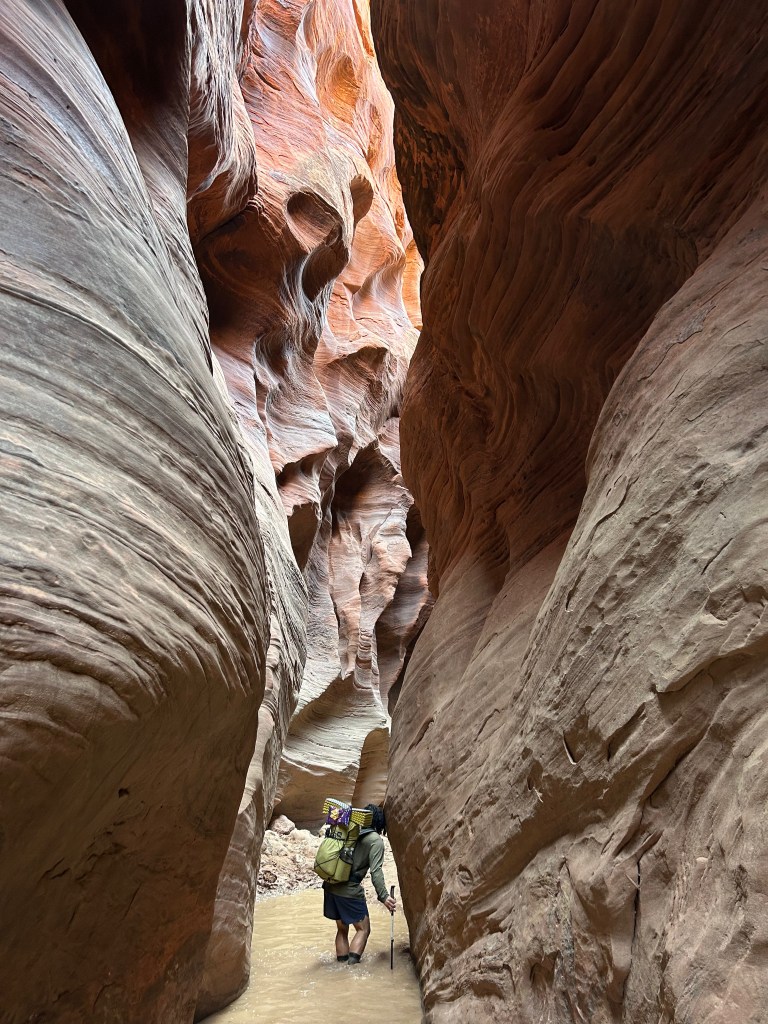 Buckskin Gulch and Paria Canyon are also notorious, as many Southwest slot canyons, for flash flood potential. You can mitigate your risk of flash floods with some careful planning and research (we had no issue), but you should still expect to get wet. Even when the canyon is relatively dry, there are a few stagnant pools along Buckskin Gulch that can be a little deep. Apparently some folks have to wade chest-deep through them. We had no issue.