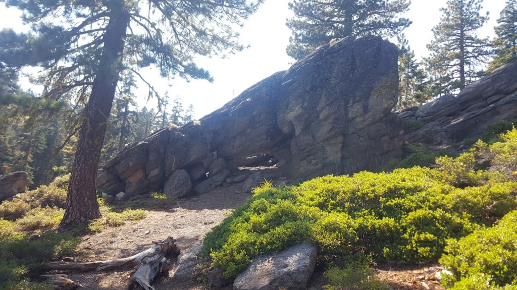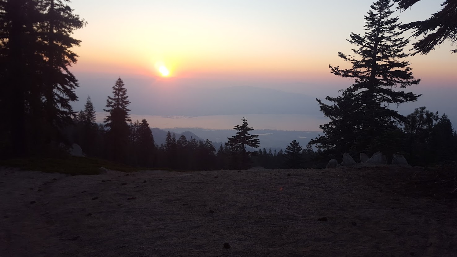 We enjoyed glimpses of a sunrise over Lake Tahoe while meandering over shale in the early morning. This section of the TRT is popular among the local mountain biking community, and soon we were keeping our eyes peeled for MTBers, eager to bomb their way down trail. Around lunch we realized this section of trail wasn’t overly scenic, so in hindsight it was a good idea to choose this for a 30 miler. In the afternoon we took a pack-off-shoes-off break, and within 30 minutes I had fallen asleep. Stirred by Cleansweep getting his pack back on, I woke up, and together we pushed the remaining miles into town. We enjoyed a vegan dinner at the local Thai restaurant in town upon arrival. Still… I hadn’t hiked 30 miles in almost a year, and we were exhausted. Fortunately for us, Tahoe City seems to be the epicenter for thru hikers starting and finishing their hikes, and thus there was a massive parking lot nestled among the trees. We stealth camped in the bushes between cars and dozed off as soon as we laid down.