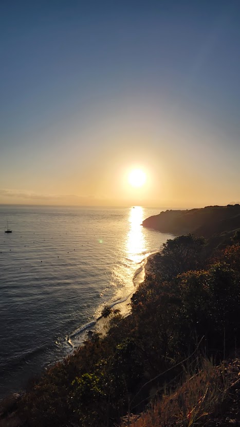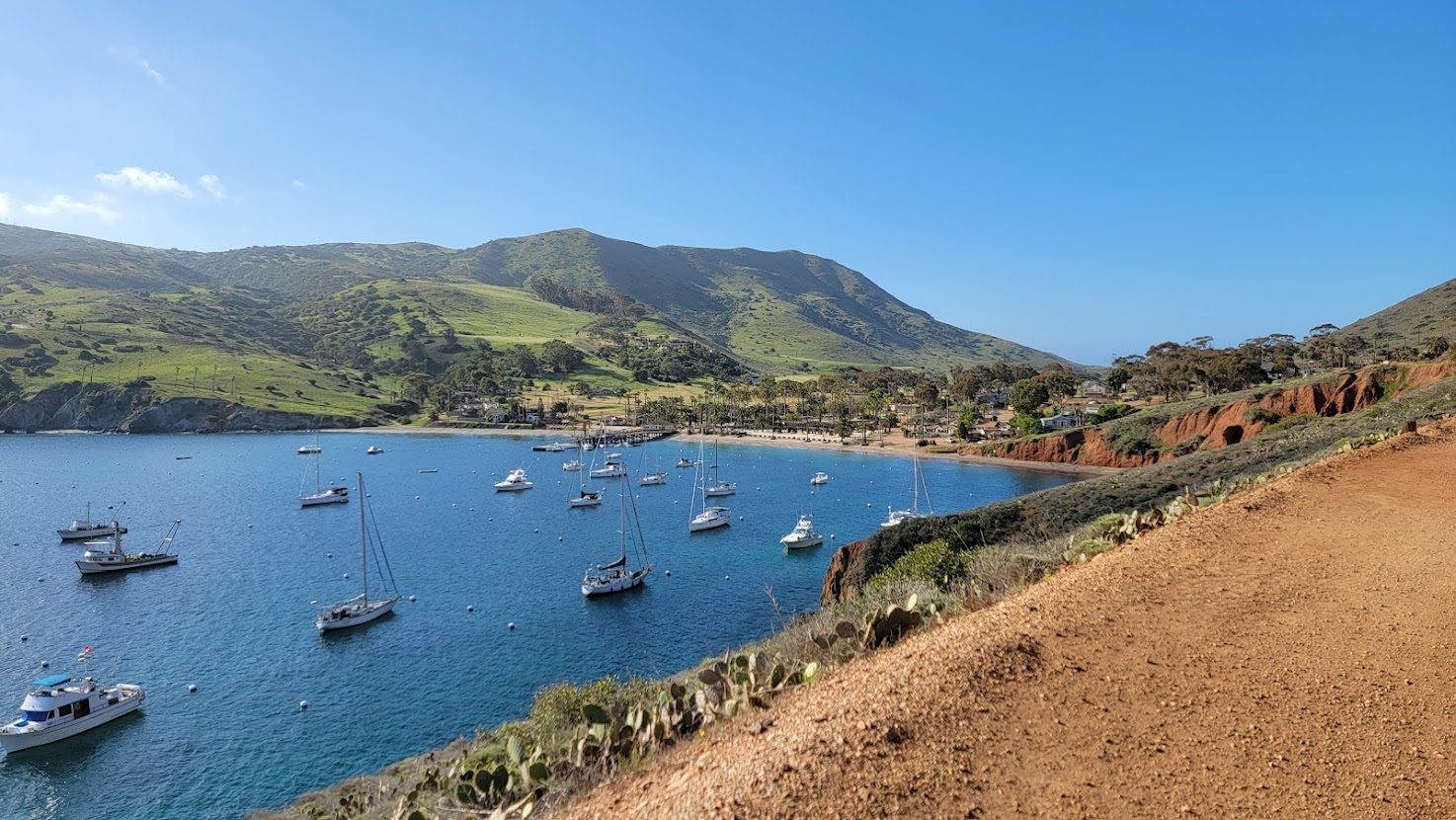 Our night’s destination, Parsons Landing, didn’t have fresh water: fortunately, the Catalina Island Conservancy had stashed firewood and fresh water for us in a locker there. The catch was that we needed to stop by the information center in Two Harbors before we got to camp. The 5 miles between Little Harbor and Two Harbors wasn’t easy, as the trail would take a steep incline over a stunning ridgeline reminiscent of the Napali Coast. The sun now stretched high in the sky, and by then we were getting a little sunburnt. We made short work of the rest of the hike after we had reached our apex, and crossed paths with many hikers going the opposite direction before we arrived in Two Harbors for lunch.