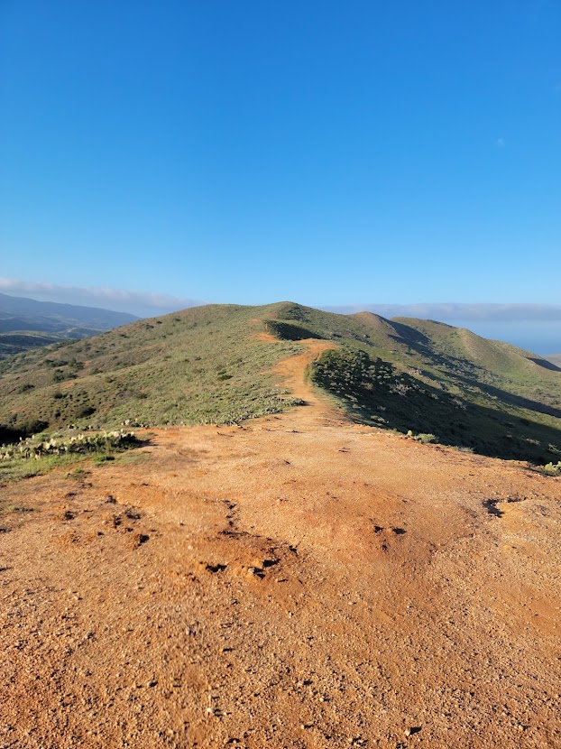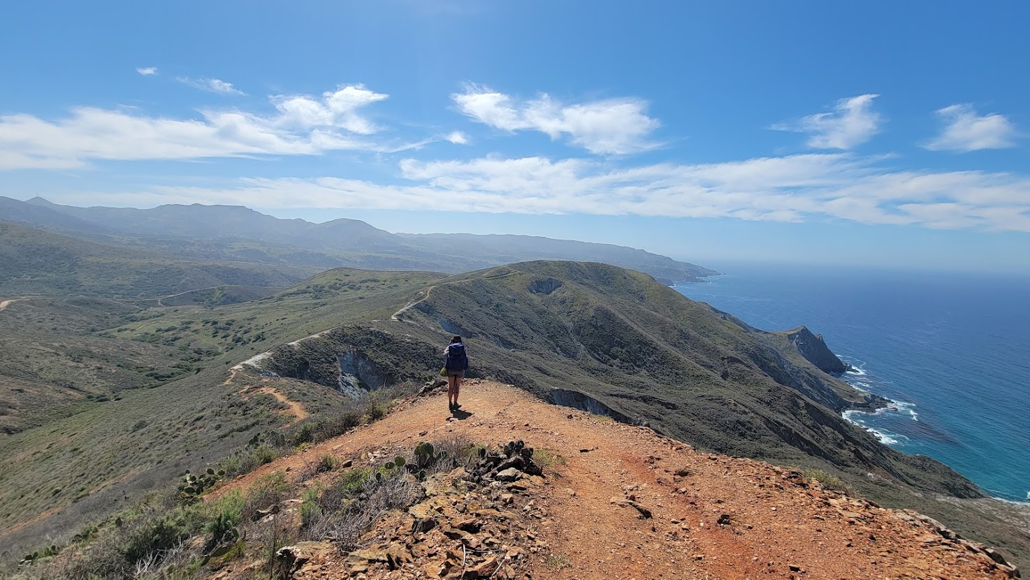 The buzz from the beer and pizza didn’t last long. Afternoon had grown noticeably hotter, and our poor PNW bodies had trouble acclimating to the heat. Once the trail crossed the isthmus of Catalina Island, it would shoot straight up on the steepest ascent we would come across on the entire journey. Our conversation died and our smiles melted while we toiled in the sun. The climb itself was challenging, but at least it offered stunning views of the northern coast of the island. We enjoyed a quick water break before walking the next few miles on the ridgeline, our only company being ravens, gliding on a coastal breeze.